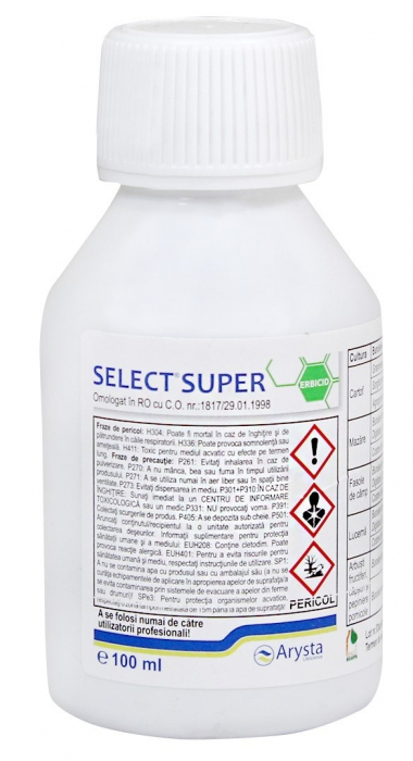 Nu se amesteca SELECT SUPER cu alte produse. Intrucat erbicidul SELECT SUPER este un produs gata de utilizare, nu se amesteca cu un adjuvant. Inainte de tratamentul cu SELECT SUPER este necesar sa asteptati minim 3 zile dupa tratamentul cu alt produs.
